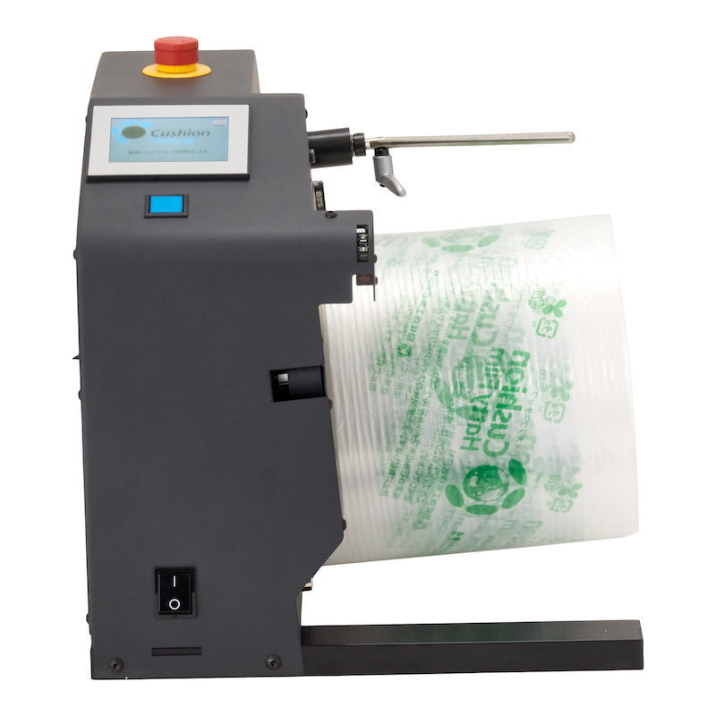 荷物の隙間を埋めて保護するエアー緩衝材製造機と専用フィルムです。